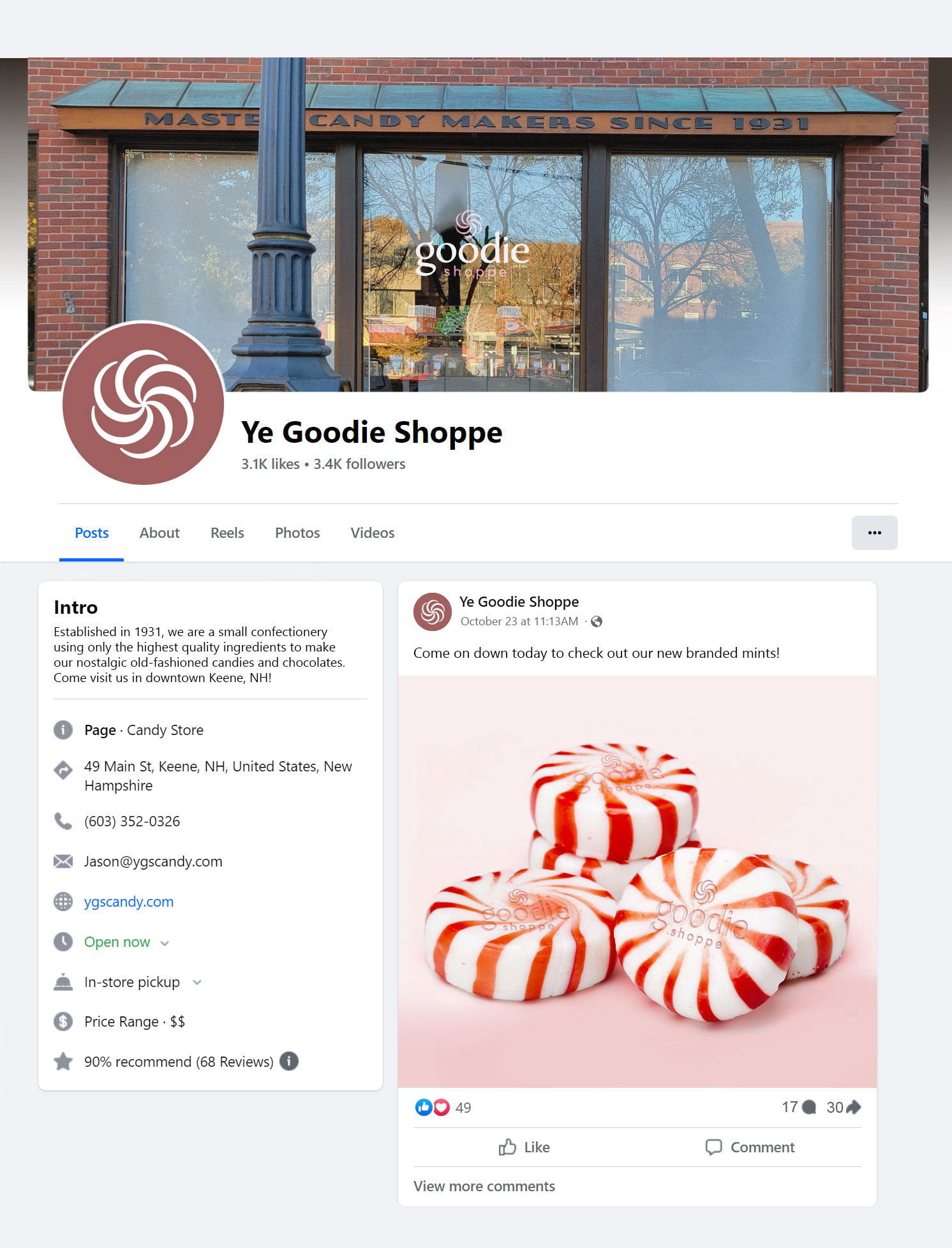 A redesigned identity for a sweet business at the heart of downtown Keene, NH, Ye Goodie Shoppe.