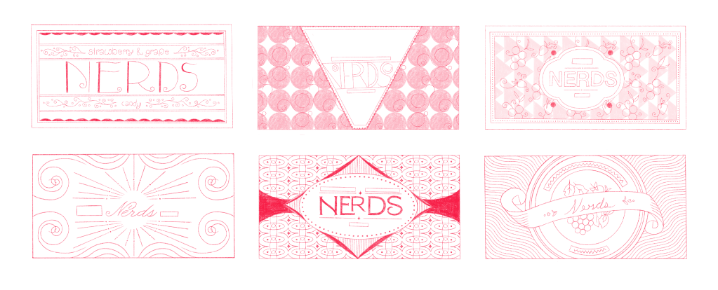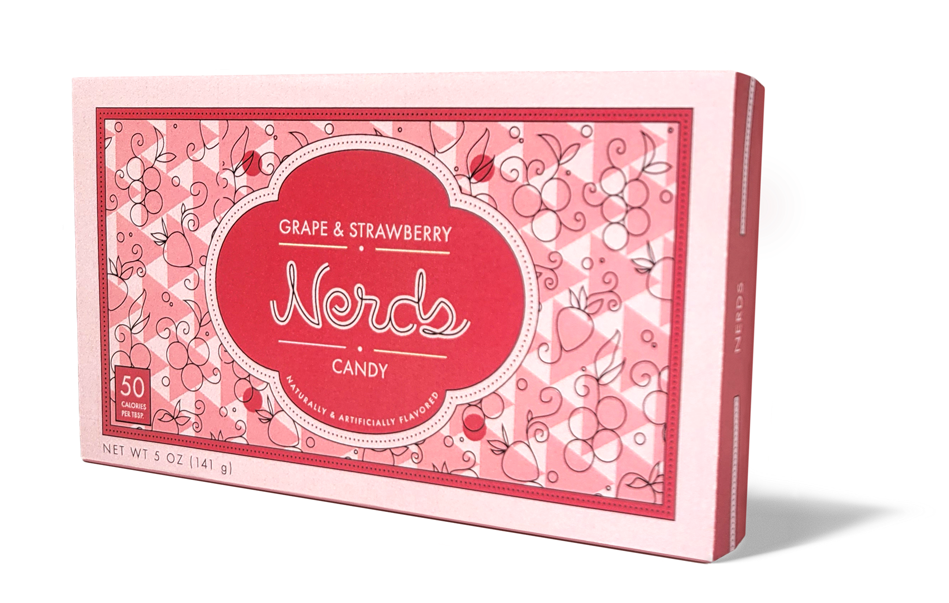 Two candy boxes for the original Nerds candy flavors, taking inspiration from the work of designer, Louise Fili.