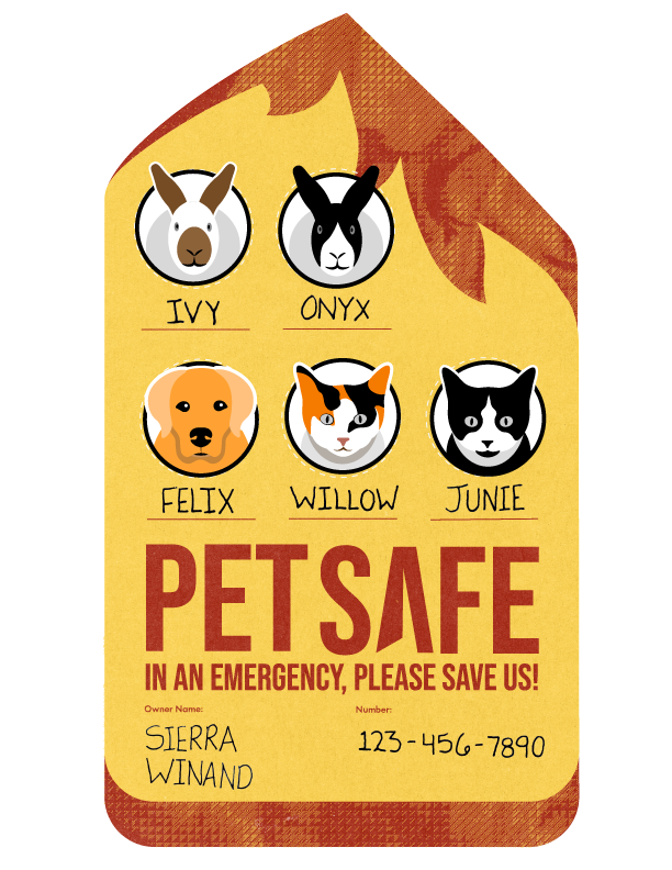 A sticker, placed on the front door or window, that alerts firefighters and rescuers to pets that may need help in a fire or flood.